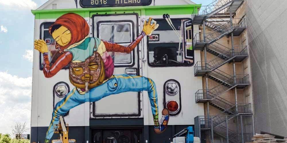 Os Gemeos, el duo Brasileño fueron invitados a pintar un mega muro en el edificio “Pirelli Hangar Bicocca”, que es un lugar donde se construyeron locomotoras del tren durante el siglo XX, esto es un lugar muy cerca a las lineas del tren.